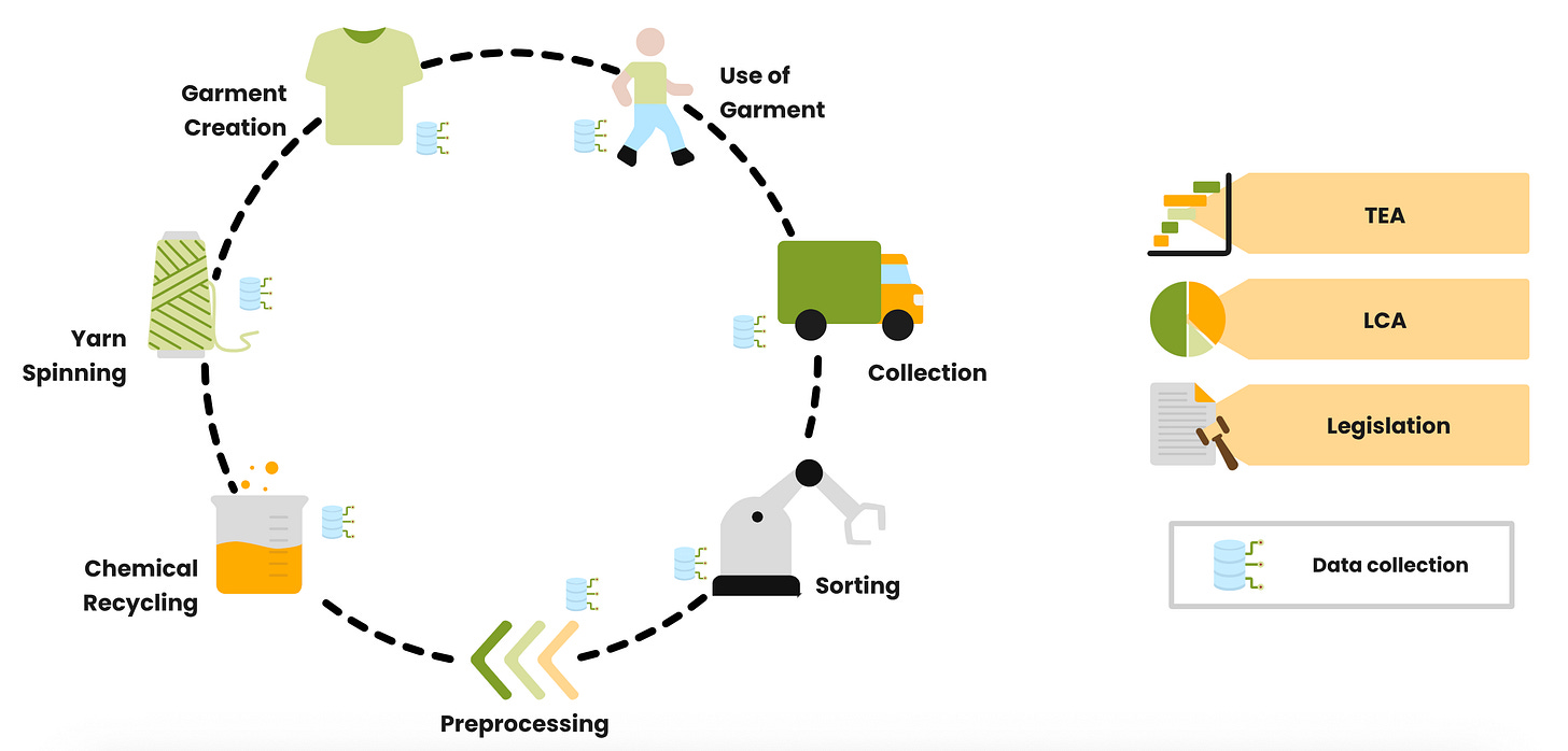 Second, systems thinking builds collaboration and shared insight. Circularity happens not only within companies, but also between them. One such example is the T-REX Project, which brought together 13 major companies from across the fashion value chain to collaboratively work towards a scalable solution to textile recycling. The three year project created a blueprint for scaling textile-to-textile recycling in Europe, and it highlights the power of collaboration through alliances. No single organisation can close a loop on its own. It takes networks and alliances to help uncover the full picture.